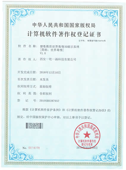 西安一筆一畫科技有限公司擁有《3C管理體系認證》|《3A信用等級》|《展館雙甲資質》《招投標證件》|《展覽業(yè)10大影響力品牌》|《環(huán)藝雙甲資質》|《禁毒教育拒毒心理測試系統軟著》|《飛奪瀘定橋歷史重現虛擬體驗軟件軟著》|《禁毒教育世界毒情3D演示系統軟著》等等,是您可以信賴的展廳教育基地設計施工企業(yè)!